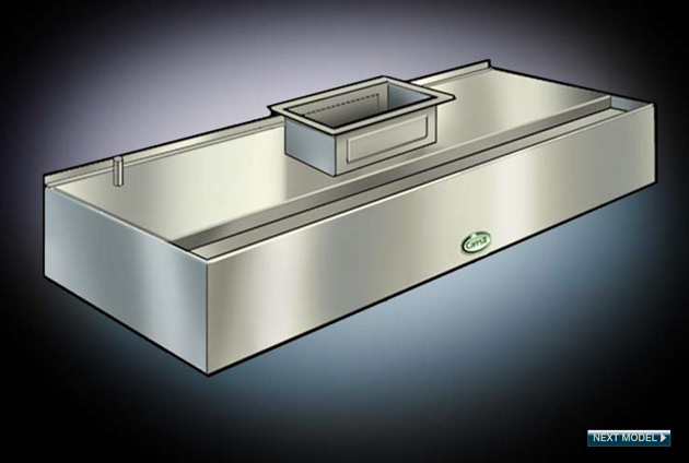 Wall-mounted high velocity centrifugal non-compensated grease extractor ventilator with hot water/detergent wash cycle. For all types of cooking equipment